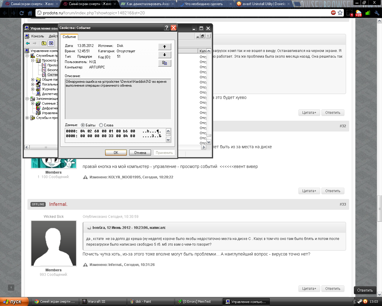 bonGra #48 12 июня 2012 12.5% скана ерорс Х 1. Думаешь стоит уходить с дома? или комп сегодня еще проработает?(офк я дома буду потом только уйду) как узнать какой у меня винт??? я не силен в компьютерах как ты уже понял Цитата eshe odin den' Поделиться сообщением Ссылка на сообщение