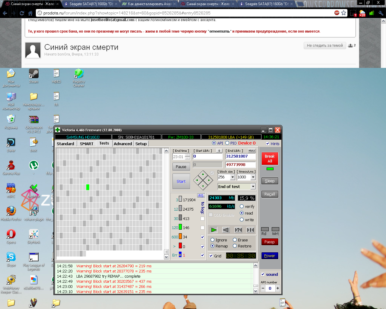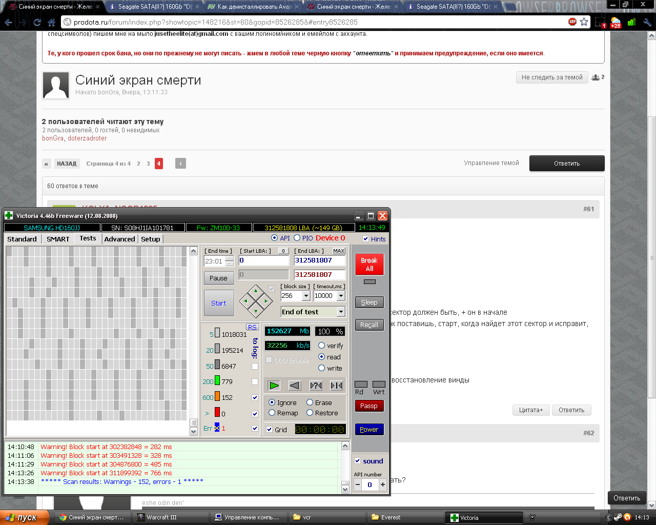 KOLYA_NOOB1995 #73 12 июня 2012 (изменено) насколько я знаю, этот сектор теперь игнорируется, винда его типа пропускает, и не считает за ошибкутакие ошибки вроде нельзя исправить, они навсегда в винте, и со временем увеличиваютсяхотя у тебя комплит написало, мб и исправило Ооу меня писал что типа ремап не доступен, сектор типа заблокирован или чето такое ну ты ок ок ок ткнул? проверка пошла? Изменено 12 июня 2012 пользователем KOLYA_NOOB1995 Цитата Поделиться сообщением Ссылка на сообщение