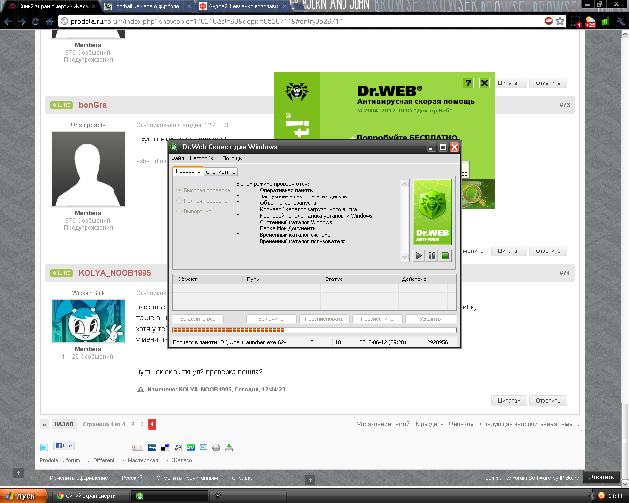 bonGra #76 12 июня 2012 скрин с дрвебомdrweb.bmp Цитата eshe odin den' Поделиться сообщением Ссылка на сообщение