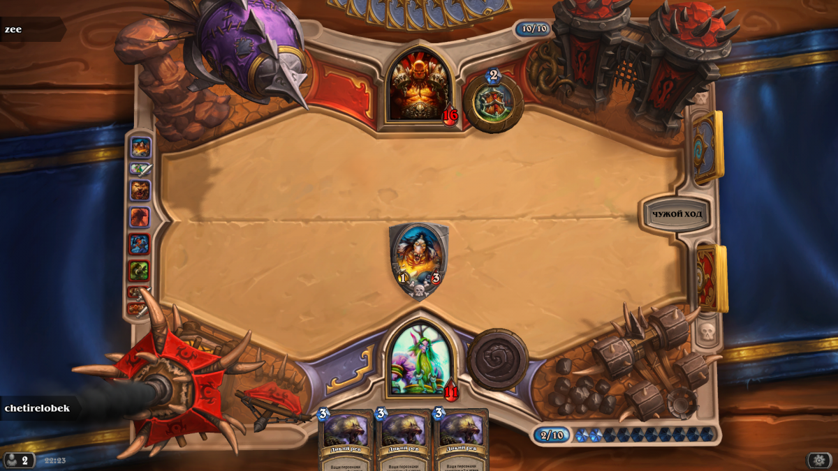 Delerium #5416 10 ноября 2014 удивился, что у кого-то проблемы с зулоками на контрол варах о_о я процентов 80 вр против зулоков на варе имею, ханты куда страшнее лично для меня, хотя тоже положительный вр, думаю) Шаманы вот да, пиздец проблемада ханты изи отъезжают обычно, если там не старт с 2х андертейкеров, а у тебя топора нетс геддоном шаманы не доставляют никаких проблем, главное молоток сломать вовремя и потом не получить 15+ урона за ход AlexTheSeal :pray: кончил с этого :pray: весь день играл, немного не хватило до 1 ранга, устал ужев конце еще в мирроре придурок переехал, который убрал какие-то ерли гейм карты и положил десяток легендарок в деку Поделиться сообщением Ссылка на сообщение