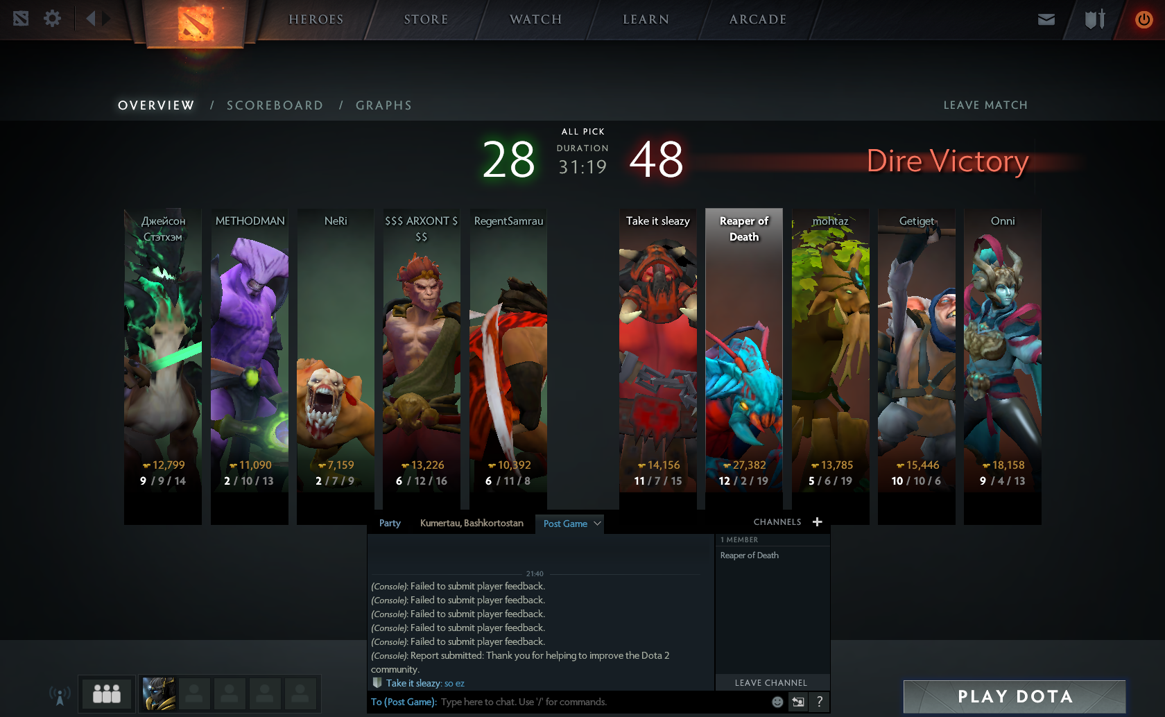 Я сам пытался репортнуть врага - пишет про фидбек и все. Зато союзнику сразу репорт отправляется. Щас сыграю игру и кину скрин, что репорт не робит и что за сообщение.
