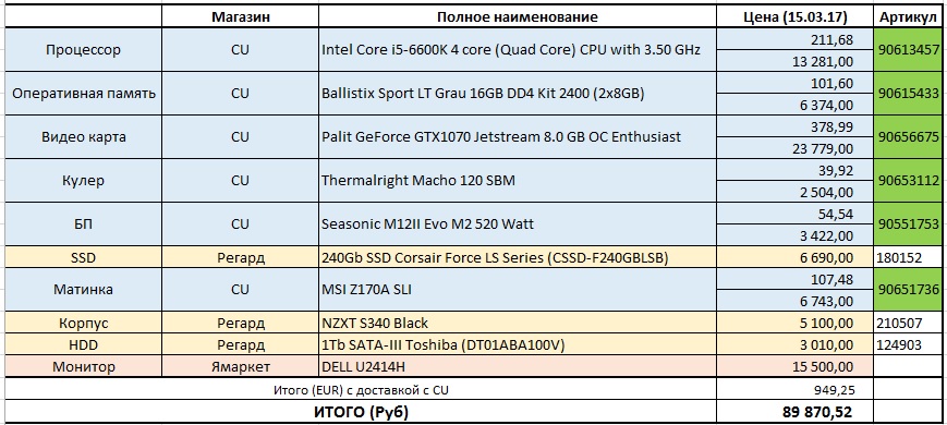 Криминал #2990 11 апреля 2017 Короче вот конечный вариант моего компаХотел на 85к собрать, собрал на общую примерно 108к, матерь божья + это хард https://www.regard.ru/catalog/tovar105935.htm+ корпус https://www.regard.ru/catalog/tovar246634.htm+ мышь с ковром но это уже похуй -Я дьявол и я пришёл делать дьявольскую работу -Нее, у тебя тупее имя было Поделиться сообщением Ссылка на сообщение