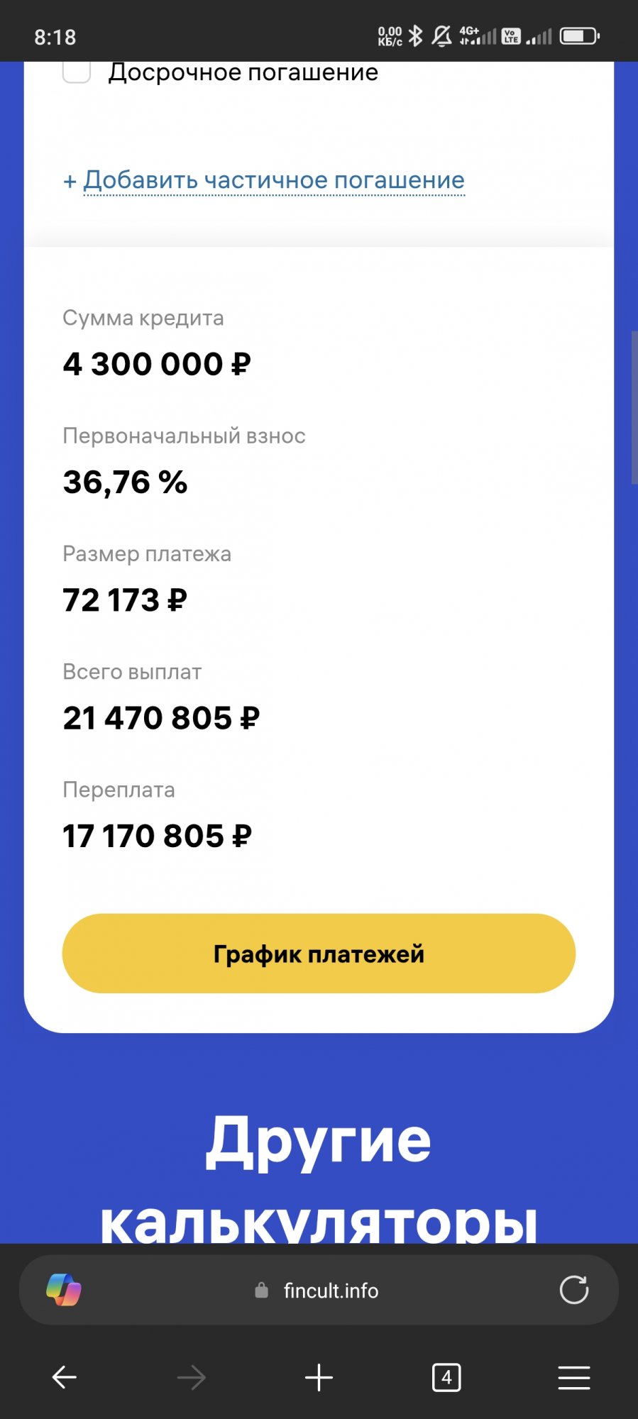 569.Miedo #8386 10 ноября D3athw1ng написал 09.11.2025 в 03:22: 569.Miedo написал 08.11.2025 в 23:32: Эх бля, беру хату 2шку в ипотеку за 6.8 в мухосранске, родители дают первоначалку на 2.5, под 19.4% в сбере, на сколько я хуйню делаю? А под сталую ставку или под плавающую? условно что будет если завтра будет ключевая ставка в 30% или в 5%? Хз) ну риелтор сказал можно будет сделать рефинансирование если что madvlaydin написал 19 часов назад: 569.Miedo написал 08.11.2025 в 23:32: Эх бля, беру хату 2шку в ипотеку за 6.8 в мухосранске, родители дают первоначалку на 2.5, под 19.4% в сбере, на сколько я хуйню делаю? хуйню делаешь лучше вкинь бабки в депозит ещё куда-то, чем брать 4.3кк под 20% ты ебобо? я парковку в еботеку взял, 750к на 25 лет по 12.4%, у меня платеж 8к, 1к тело, 7к проценты, сколько у тебя платеж будет? 100 тыщ? из них тело кредита 10к? ну бля Цитата быдло и горжусь этим Поделиться сообщением Ссылка на сообщение