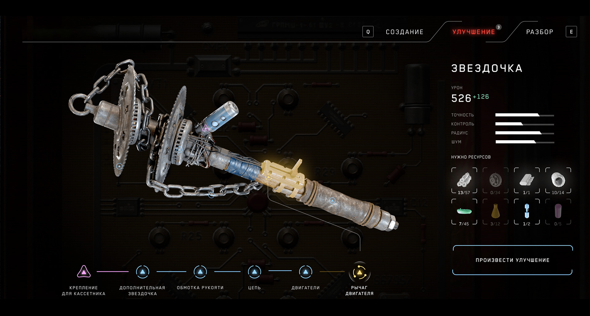 Разнообразные детали и компоненты помогут вам создать более чем 30 видов холодного и огнестрельного оружия в устройстве “Чайка 3.0”. А различные кассетники и модификации позволят эффективно использовать окружение и уязвимости противников.