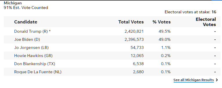 в Мичигане до этого отрыв у Байдена был больше, чем сейчас. Вообще непонятно, что там будет.