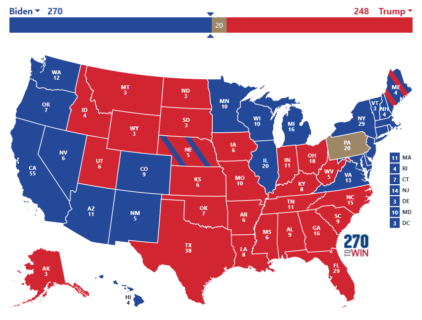 Если у байдена 270 останется, то остаётся только надеяться, что какой-нибудь выборщик в Аризоне нахуй пошлет байдена и не вкинет свой голос