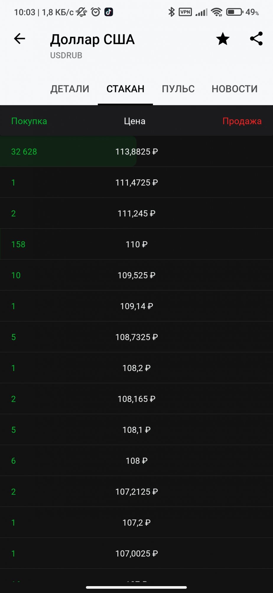 в данном случае выше я скидывал скрин стакана валютной пары USD/RUB
