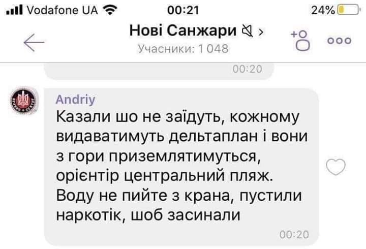 morency #5734 20 февраля 2020 в Санжарах Полтавской области наша корреспондентка пообщалась с местными дядя с флагом в руках заявил, что если людей из Уханя все-таки тайно привезут тогда активисты будут штурмовать санаторий Вот бы НКВД вернуть Поделиться сообщением Ссылка на сообщение