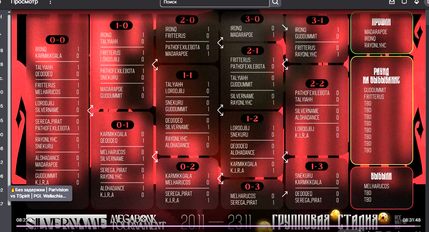 Sh3Va #31024 21 ноября Вместо нормальной швейцарки до 3х побед сделали какуюто хуйню Вместо системы, где за 3ю победу / 3е поражение идет бо3 и выход в плейоф/вылет с турика, сделали зачем-то 4 победы. А мужики с 2-2 вообще играю бесполезную игру и независимо от результат проходят дальше Цитата Поделиться сообщением Ссылка на сообщение