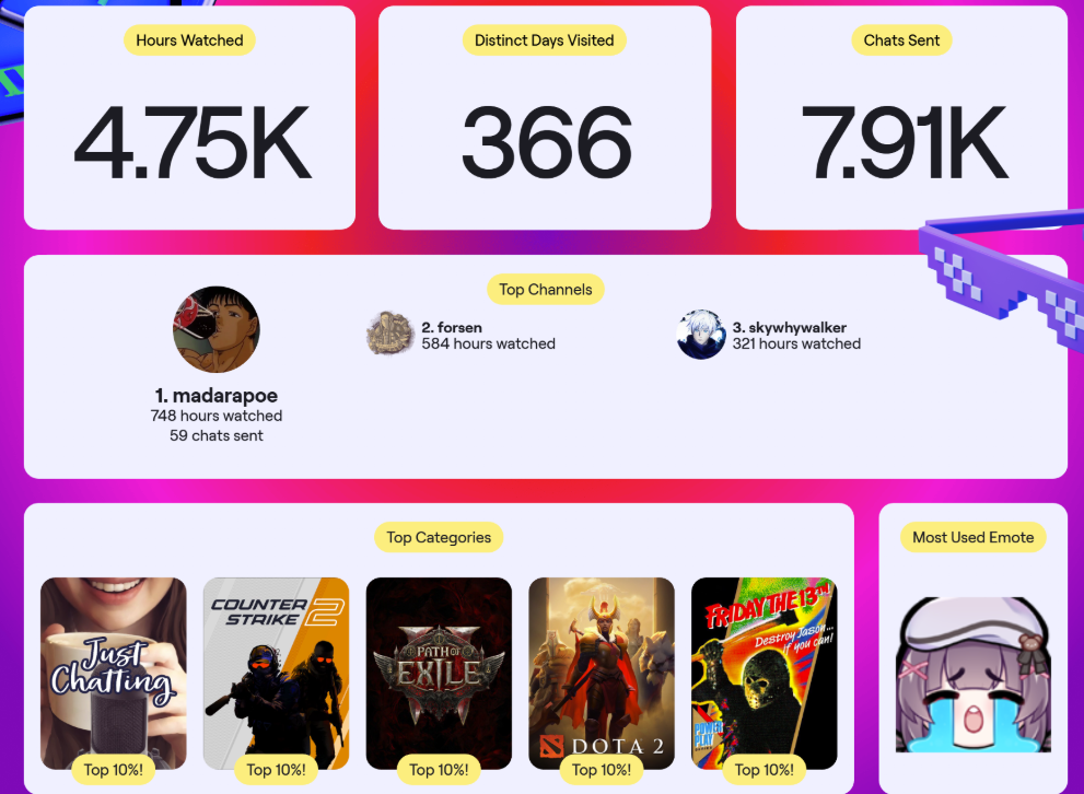 minusbaby #31442 1 час назад Твитч походу не считает часы просмотров с телевизора. Чёт у меня совершенно нелегитимный топ получился со смешными цифрами. Цитата Steamhttp://steamcommunity.com/id/slimper/ Поделиться сообщением Ссылка на сообщение
