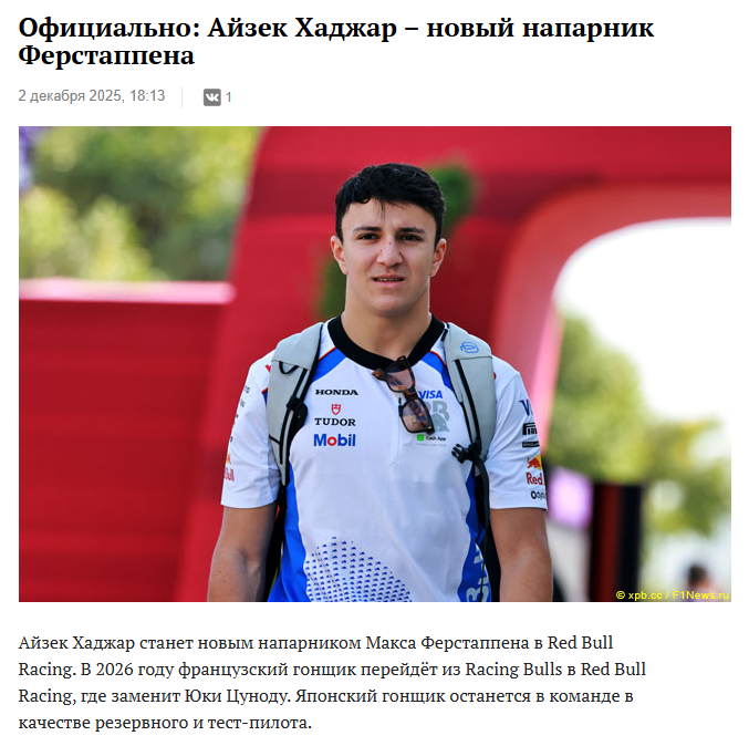 Zhenek #11514 Во вторник в 18:32 (изменено) Первую половину сезона челы сидели гадали, сколько раз будет норриспиастри топ1 топ2 в этом сезоне. Нет, редбул машина не говно ебаное , сука, блять ... Я не буду отрицать, что во второй половине редбулы что-то там сумели высрать, но этого, очевидно, не хватает, и чисто на скилле Макс вытаскивает это говно в топ в случаях, где Макларены это буквально позволяют сделать Finesku написал 2 часа назад: BreeBree написал 30.11.2025 в 20:45: Zhenek написал 30.11.2025 в 20:40: Хз, чемпионат должен выигрывать лучший гонщик, и думаю, что нет сомнений в том, кто это Кто выиграл, тот и лучший. У Макса такая же "самовозка", как и у Маккларен. РБ проигрывали не так много трасс вчистую, чтобы щас сказки рассказывать о том, как машина довезло вгландо и Пиастри. Тем более, когда Маккларен сами себе палки в колеса весь сезон вставляют. Буквально маки были в 2 быстрее весь уикэнд ред булла, но тем не менее Макс обходит долбаеба в первом повороте, как тут можно говорить о самовозе хуй знает Макс обошёл чела в первом повороте потому что у него позиция была объективно лучше: на земле там не насрано и т.д.. Ну и офк он быстрее среагировал и вполне вероятно у него машина в этом плане лучше Изменено Во вторник в 18:34 пользователем Zhenek Цитата WOW POE Поделиться сообщением Ссылка на сообщение