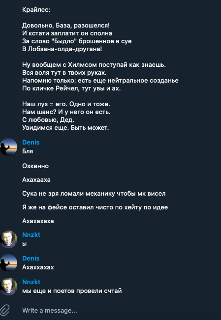 то есть опять же это простор для мувов и развития игрового процесса, это вообще крутая хуйня, она ведь порождает опять же создание обсуждения процесса игры в топике, реакций на произошедшее и контекст
