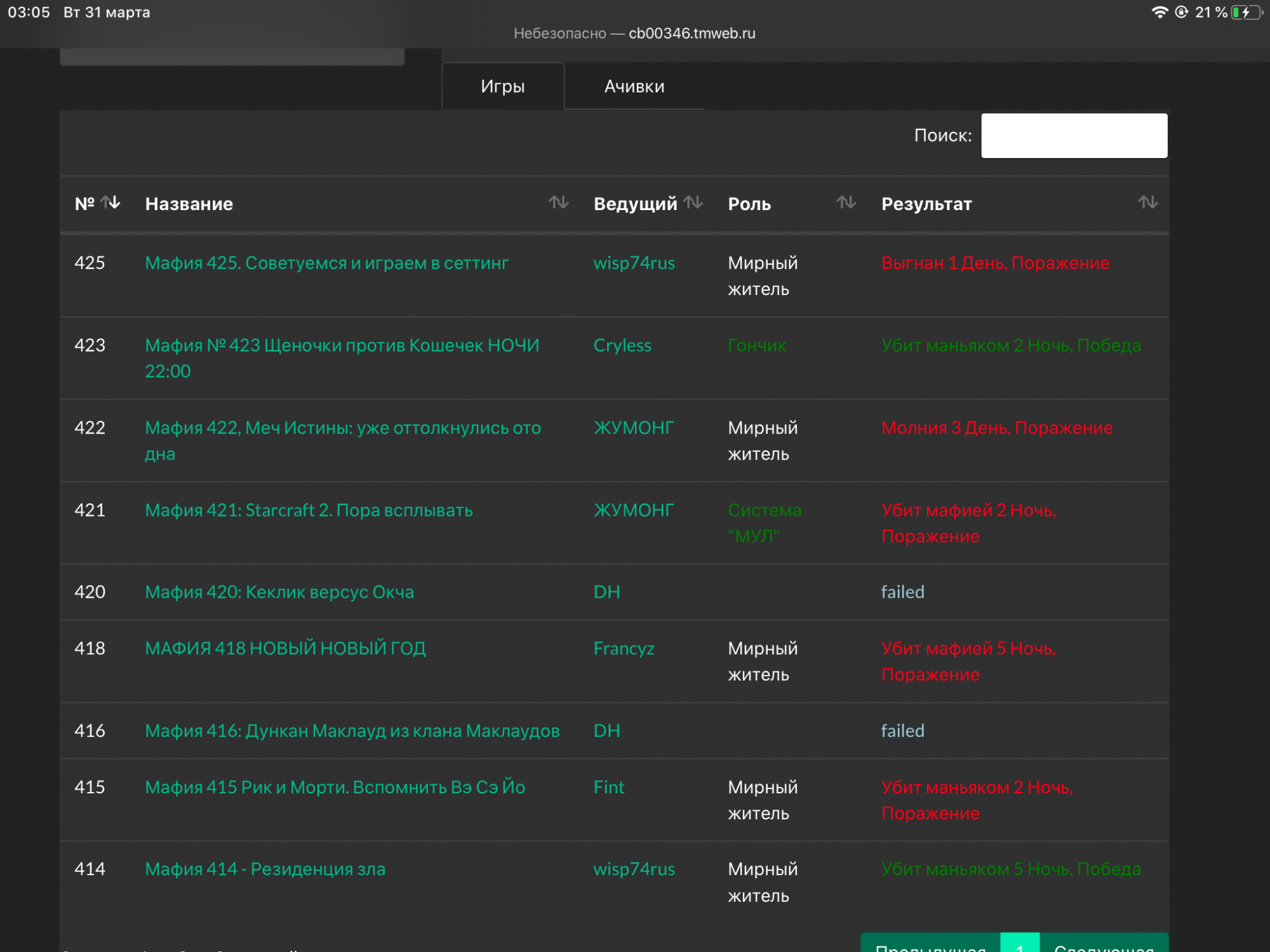Roatoupskill #551 31 марта 2020 otarik написал Только что: У нее за все время ниодной игрына мафии но за две последний ее оба раза четко в черных пишут в прошлой на халяве дожила до не помню какого дня ну ты вообще сам себя закапываешь уже у нее по теорверу всё настолько плохо, что я хуй знает кем надо быть, чтобы ее дефать при этом Поделиться сообщением Ссылка на сообщение