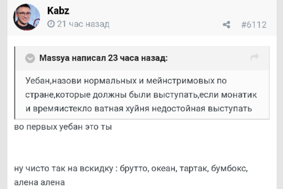 какая разница что говорил кабз, если челик говорит, что у нас в стране рагульскую музыку слушают
