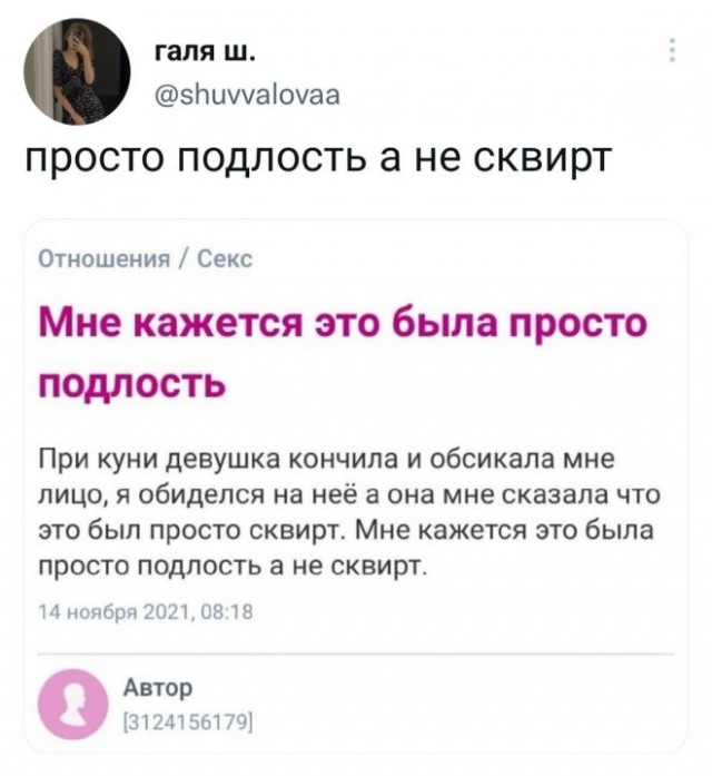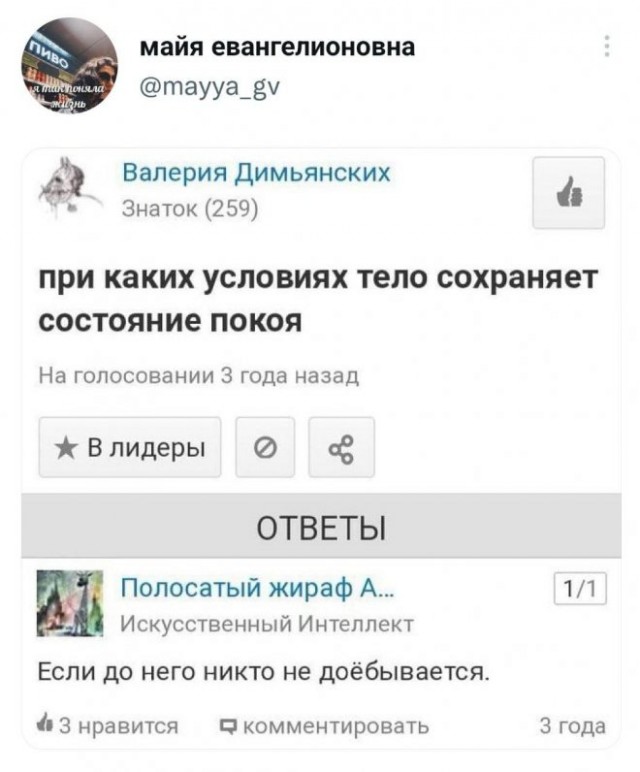 coali #27727 19 сентября Glamdring, gRUzz, Ravnodushie и 9 другим понравилось это Цитата мемолог Поделиться сообщением Ссылка на сообщение