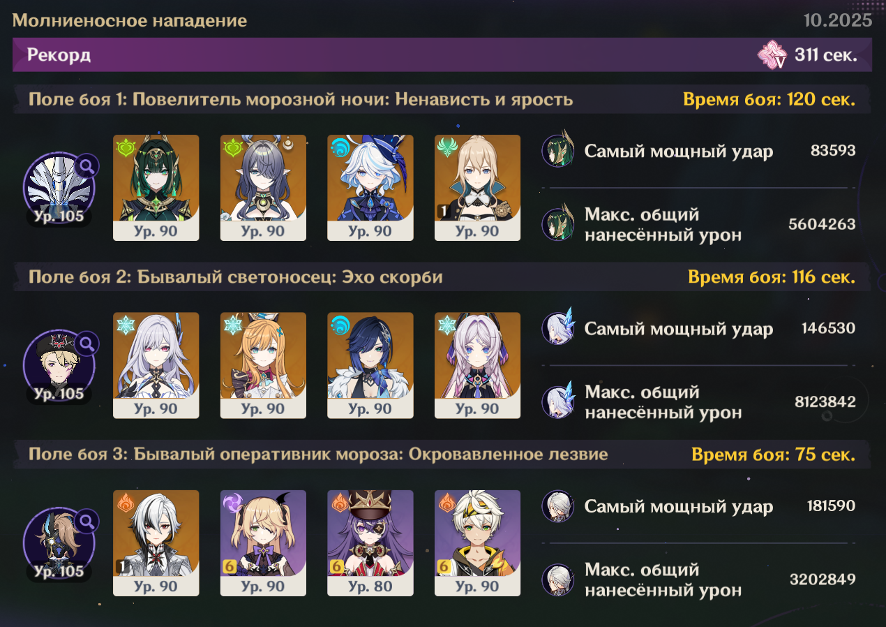 Sword Cutlass #11037 29 октября ValeraIdiSuda написал 19 минут назад: чет еще проще получился натиск, с козлом пришлось побороться, остальные два с первого раза третья фатуйщица вообще лопнула я не понял куда босс делся Я решил на пятой сразу пробовать пачками, которыми потом буду шестую траить - пришлось попотеть на фатуистке без щитов на Варесе А на шестой сложности не хватило дпса на три пачки. Зомбака только Скирк осиливает, а Вареса коня даже близко не может убить и на фатуистке в лучших траях процентов 20 хп остается, даже освободил для фатуистки Сянку, автоатаками которой я сначала вскрывал коню щит + сигну Эскофье на Иансан - и все равно не хватает. Жаль баннер Варесы только в следующем патче, наверное с её сигной и с2 хватило бы Показать содержимое Цитата Поделиться сообщением Ссылка на сообщение