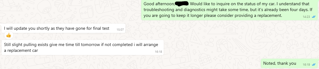 - Нет, всё ещё ведёт. Если завтра не разберёмся, дадим вам сменную машину.