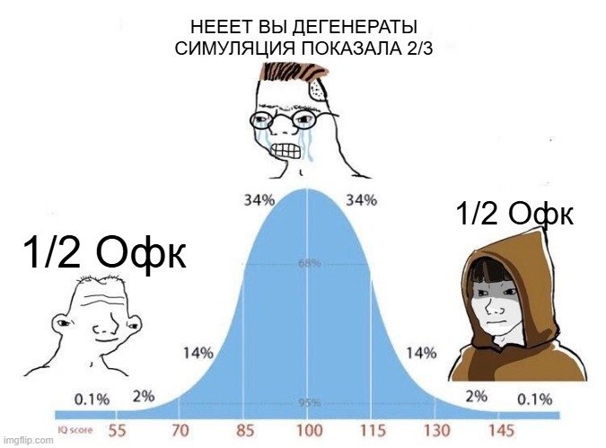 Твоя логическая ошибка заключается в том, что ты исходишь из того, что изначально есть 3 коробки, а не 2