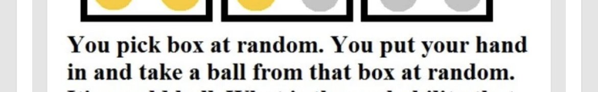 сказали, что достаётся только золотой - сказали, а из какой коробки - не сказали. Вот только в задаче есть информация, которую ты не способен осознать, и эта информация говорит нам о том, что из 1й коробки ты это золото вытянул с бОльшей вероятностью, чем из 2й