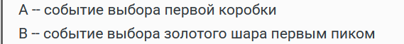 P(A&B) = 50%, т.к. золото можно вытянуть из первой или второй коробки, которые равновероятны.
