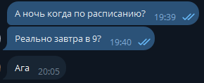 LXjkee #5057 9 декабря 2023 R0ss0ha написал Только что: ночь сегодня админ просто телефонщиук лютый подумал шо все упало мне ответил господь бог что завтра не вижу причин не верить Поделиться сообщением Ссылка на сообщение