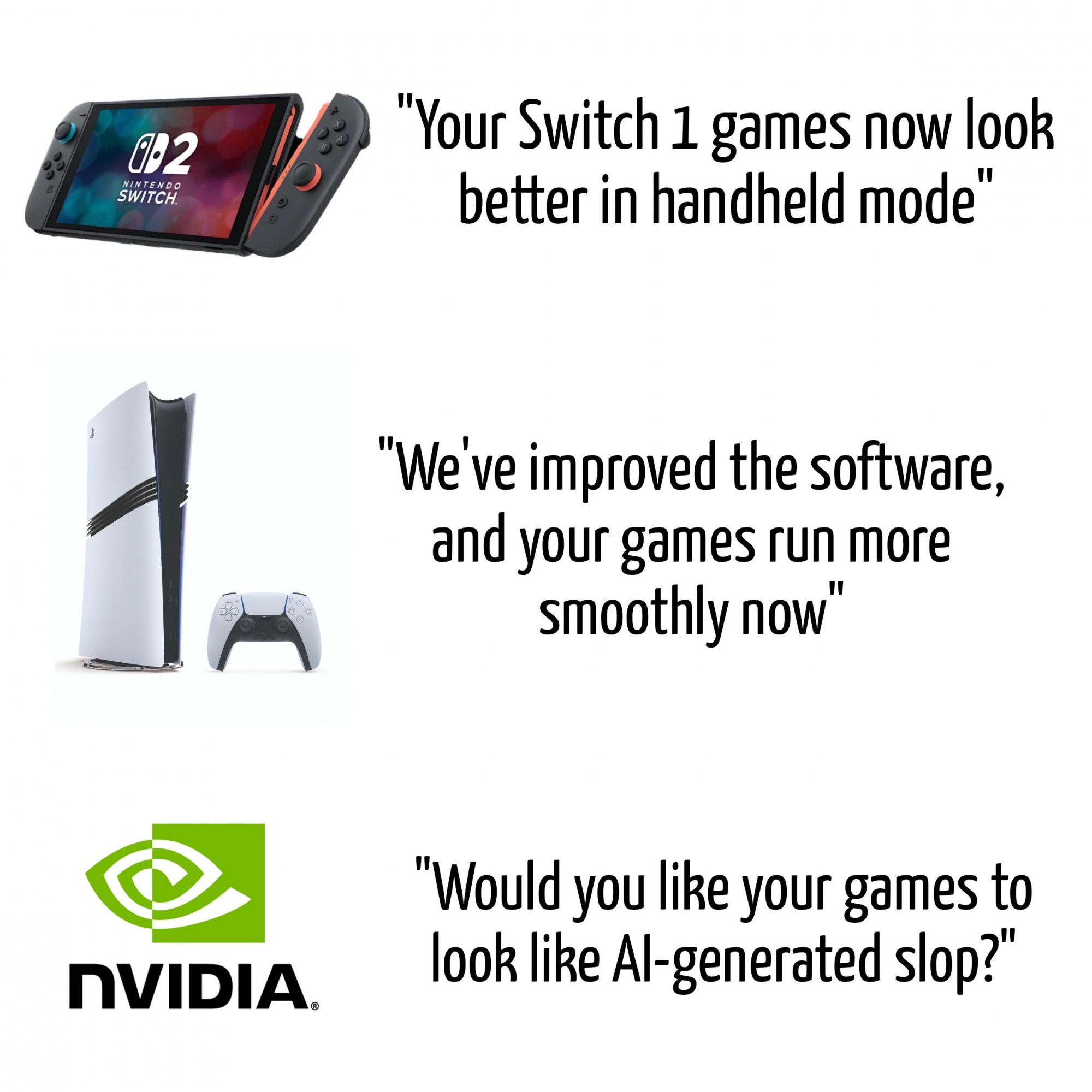 JohnCraft #10058 17 марта (изменено) ну и по сути, нам показывают "застывший" кадр с изменениями, а в динамике как оно будет? ну кроме освящения, разве не должно оно как-то ломаться? да и ебальник оно генерит в одной игре, по разному разве погружение не будет ломаться? лол лайфхак как врубить длсс 5 без двух 5090 выкрутить яркость на максимум, ну там же реально игра света и тени просто идет по пизде Изменено 17 марта пользователем JohnCraft Цитата Поделиться сообщением Ссылка на сообщение