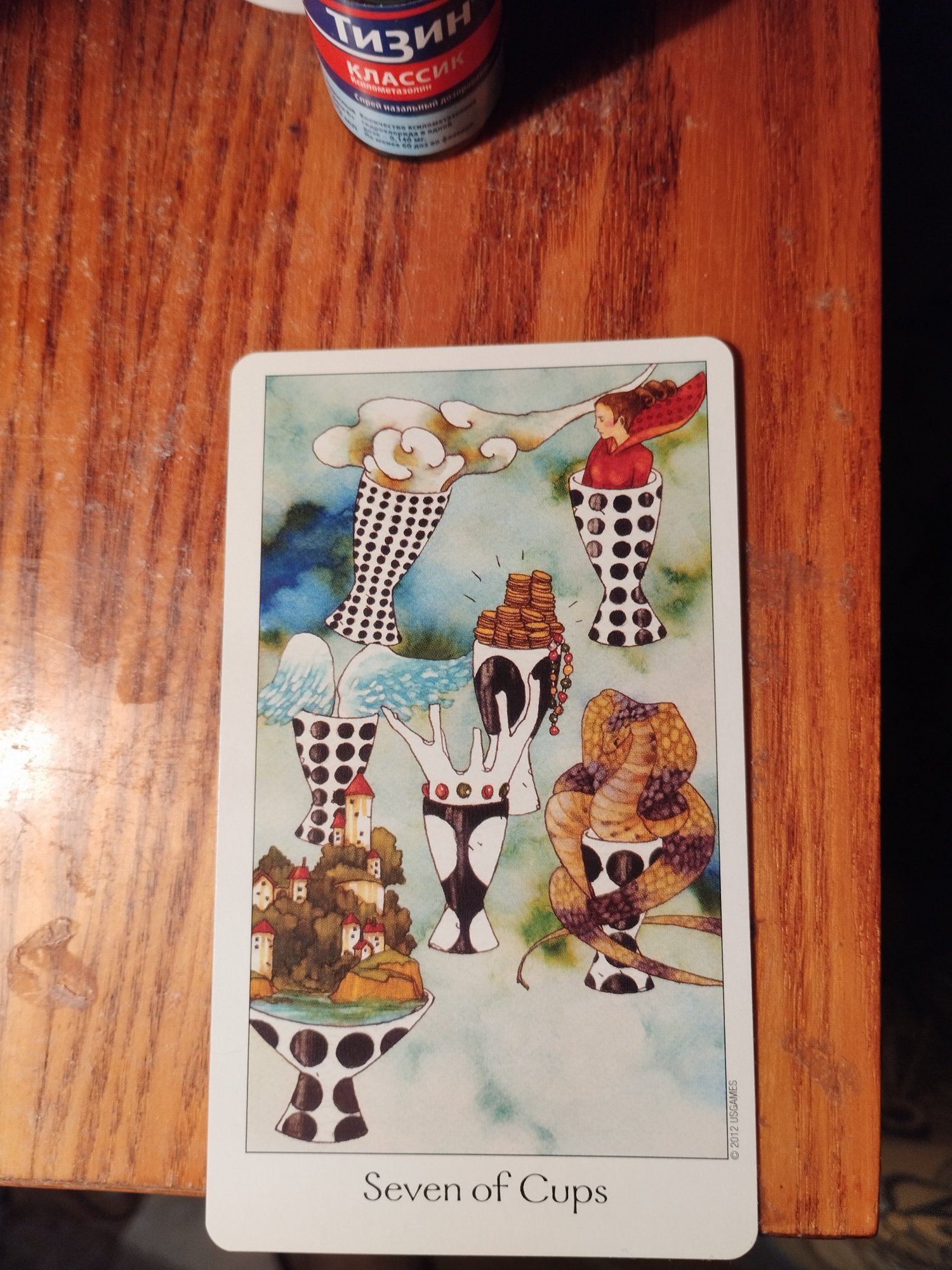 Что означает Семерка кубков в картах Таро? Это карта воображаемого успеха, мнимого обладания благами и разочарования от реальности. Человек находится в трудном положении, сделал неправильный выбор или рискует ошибиться. Перед ним открыты несколько дверей, что сбивает с толку и мешает понять собственные потребности.