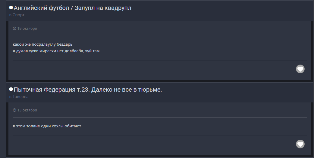 Lightovych #7257 1 час назад Aferus написал 1 час назад: Messor написал 1 час назад: Waro написал 1 час назад: Lorcer написал 1 час назад: тут у них тоже раздел прям плашка на главной любой желающий увидит а на д2 он блядь внутри таверы а там внутри игрового раздела который 1 пост и хуй в него попадешь. ТАкая срань как нас д2 кинуло с адским знаешь сколько мы хуев админам пересосали? (а потом оказалось, что мафия это главный посткаунт форума, который просто фармит активность и мы вроде в почете глобально) Конечно, кто же ещё может насрать 1000 постов за день. Ну наверное обсуждали сборку на пангольера от Хайфы на полигоне анимедауны точно могут. и полит флудеры тоже. хотя уверен, что тут каждый первый аниме посматривал или даже посматривает пошел из интереса глянуть профиль финески футбол, формула, политика эталонный скуфендуй на сладкое: хотя из всех знакомых за всю жизнь только двое еще смотрели формулу 1. так что все таки не совсем типикал. мал к осмотру вижу что замазываешься Цитата Поделиться сообщением Ссылка на сообщение