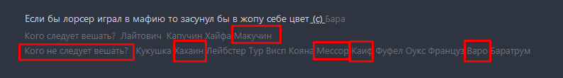 Aferus #7482 4 часа назад Messor написал Только что: Aferus написал 2 минуты назад: Messor написал 4 минуты назад: Aferus написал 6 минут назад: тебе свое плечо предлагал для пуша в чбра, оукса, лебстера, базу. любого мог выбирать Оукс чек, база по ролтону вообще никак, чбра ижевские писали в мж, а лебстера только как афк энироль идти Топан думал на Триксткиа и у меня был с ним разбег, но ты решил почему то что он дохуя красный и своей глупостью ты не иронично заруинил мне игру че сразу глупостью, че обзываешься. говорю же, он под копирку с прошлой был, инфу неоткуда больше брать Я мягко выражаюсь, извини если задел Ну может мне очевидно было, я же роли знал Опять же, Тристаре остальные видели мафом, а ты почему то нет. Хз бро ну он у вас уже некоторое время катает, ктото писал, что он на эни роли такой, Пташка вроде. так что мои нотсы устарели, а с прошлой партии оказались не показательны. так что мне надо просто обновить свою инфу по всем, с кем раньше играл, а по остальным собрать ее. да похуй, как будто я чет решал. тебя и его вешали без моего участия. я ток с дедом помувил, а дальше чисто присоской был к мирному кулаку активов Цитата Поделиться сообщением Ссылка на сообщение