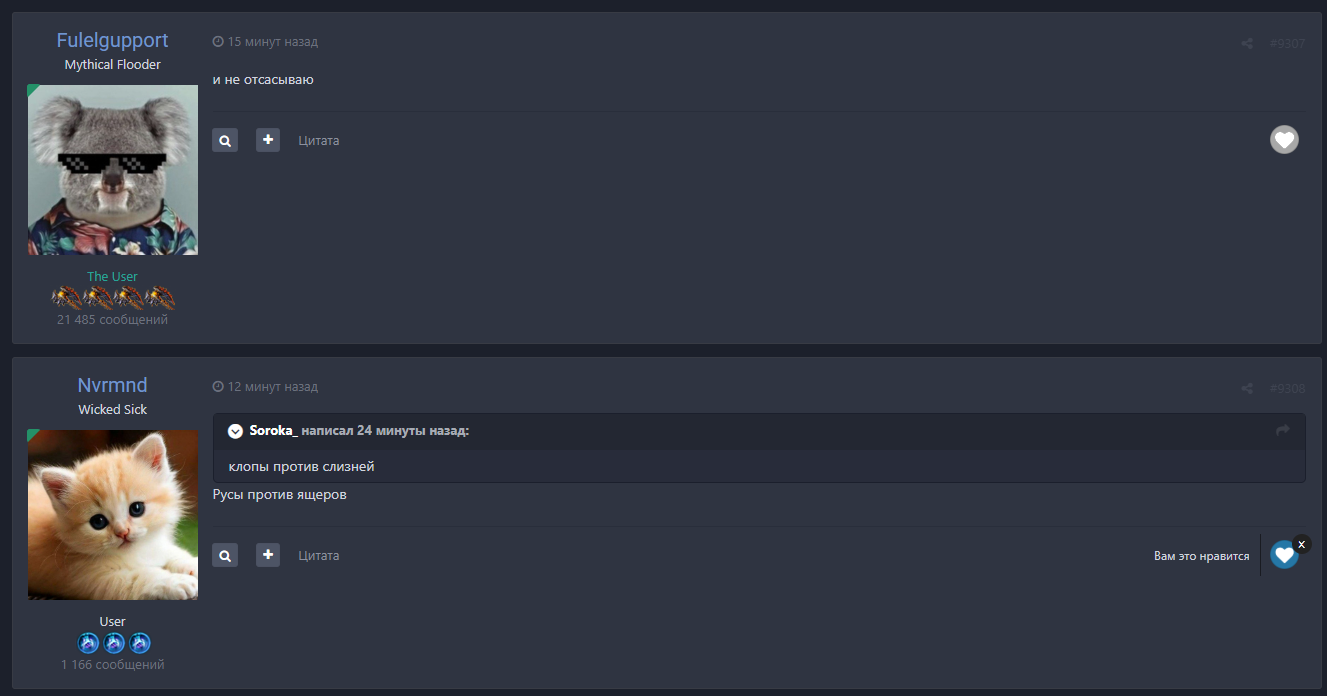 BRA_HAYFA #9309 Во вторник в 22:41 Fulelgupport написал 15 минут назад: BRA_HAYFA написал 19 минут назад: вы все еще это обсуждаете? больше ниче интересного не произошло, высасываем как можем я не высасываю Fulelgupport написал 14 минут назад: и не отсасываю это потому что тебя зовут Роман, а Романы не сосут Fulelgupport понравилось это Цитата Поделиться сообщением Ссылка на сообщение