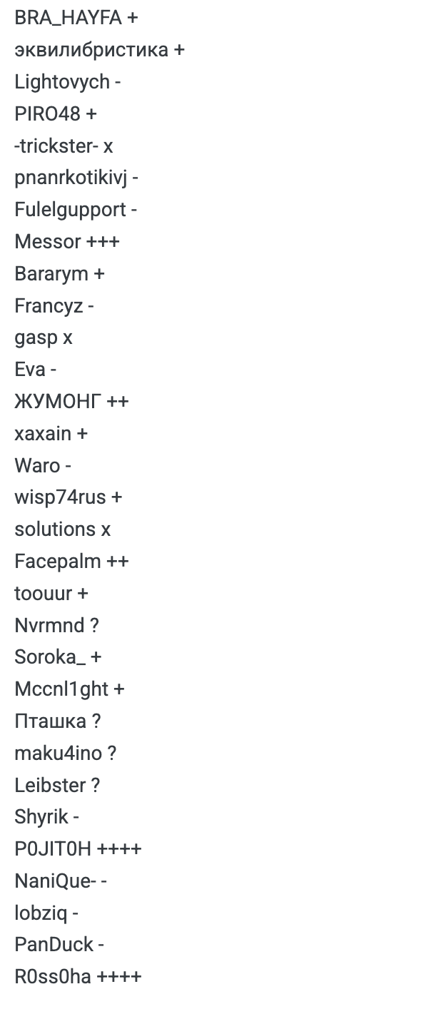 Waro #9492 4 декабря 2025 не могу не отметить, что среди пингвинов НИ ОДНОЙ МАФИИ это победа мирной банды пингвинов дата подпись Francyz и Soroka_ понравилось это Цитата mafia gameplayhttps://www.youtube.com/watch?v=gDfqNC-6MLo Вся правда про королевскую кровьhttp://www.youtube.com/watch?v=UeOSzDVqOYo ZashkvarTV Поделиться сообщением Ссылка на сообщение