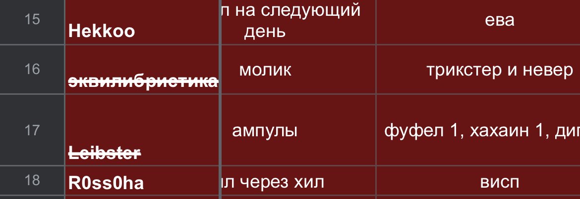 Lorcer #10252 В пятницу в 19:38 PIRO48 написал Только что: Lorcer написал 2 минуты назад: Ну я боялся как раз что не аврилка а Триесте/Липтон и у нас на матвин не наберется. Потому что вы не могли быть вором только мешок или полуафк а Липтон раньше был пфкашнее со слов игрокоа чел ты зачем против наника играл только что если он по ночным ходам не мог быть мафией Да я не играл против наника серьезно ещё до твоей смерти Цитата (с) Бара Поделиться сообщением Ссылка на сообщение