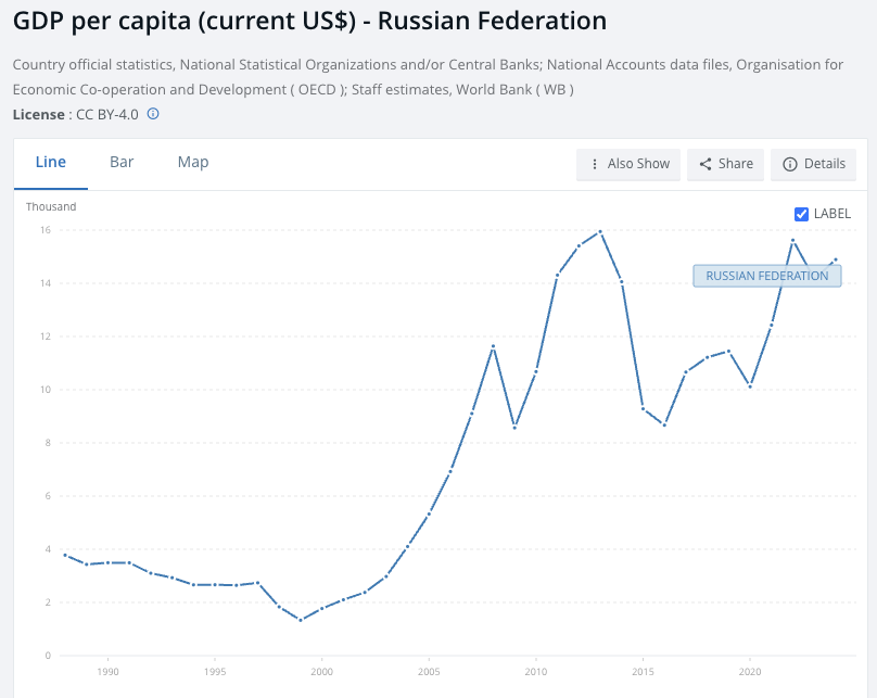 Кстати график ВВП РФ при мудром руководстве эксперта в геополитике