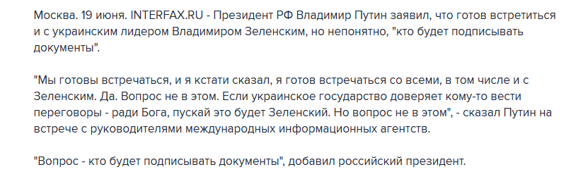 Последнее, что нашёл на тему разговоров Путина и Зеленского