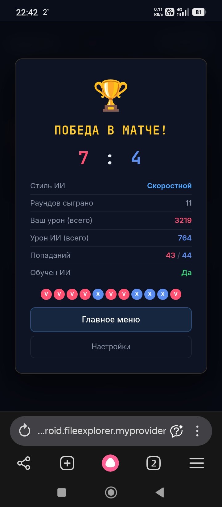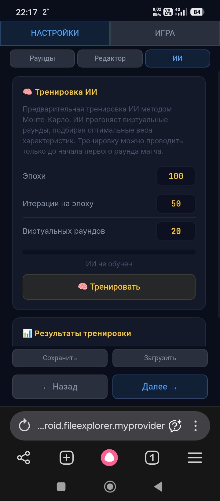 Gomosek #2070 В субботу в 19:41 yellyex написал 8 минут назад: LynTeek написал 11 минут назад: че за игра и почему там надо торговать своим очком Простая веб игра. Сражение игрока против ИИ. Вкачиваешь характеристики и пошли драться. Но ИИ глупый пока. Вот пытаюсь его улучшить. Благодатный огонь сошел и ты вернулся. святой человек yellyex, LynTeek и Qreeq понравилось это Цитата Поделиться сообщением Ссылка на сообщение