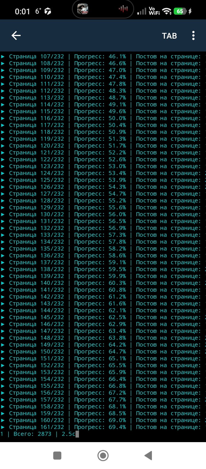 yellyex #1950 1 час назад Новый исправленный парсер: Скрытый текст # -*- coding: utf-8 -*- """ ================================================================================ ПАРСЕР ФОРУМА PRODOTA.RU (версия 4.3 — исправленная очистка) ================================================================================ 📋 ОПИСАНИЕ: Программа скачивает сообщения с указанной темы форума prodota.ru и сохраняет их в удобном формате. Поддерживает два режима работы. 🔹 РЕЖИМ 1 — Только текст (рекомендуется): • Сохраняет: автор, номер поста, время, текст сообщения • Формат: JSON или CSV (на выбор) • Опция: разбивка на файлы заданного размера (в МБ) • Очистка: удаляет подписи, лайки, кнопки интерфейса, метаданные • Цитаты: сохраняет структуру "цитата + ответ автора" 🔹 РЕЖИМ 2 — Полный архив: • Всё из режима 1 + скачивание вложений (картинки, видео, документы) • Создание локальной HTML-страницы для офлайн-просмотра • Вложения сохраняются в подпапки: attachments/images, videos, docs 📁 ВЫХОДНЫЕ ДАННЫЕ (режим 1): Каждая запись содержит ТОЛЬКО 4 поля: { "author": "никнейм_автора", "post_number": "ID_поста", "post_time": "время_публикации", "post_text": "очищенный_текст_сообщения" } ================================================================================ 🔧 НАСТРОЙКА ПРОГРАММЫ (редактируйте этот раздел перед запуском) ================================================================================ """ # ========================== ИМПОРТЫ БИБЛИОТЕК ========================== import os import re import sys import json import csv import time import logging from pathlib import Path from urllib.parse import urljoin from typing import Optional, List, Dict, Any, Generator import requests from requests.adapters import HTTPAdapter from urllib3.util.retry import Retry from bs4 import BeautifulSoup, Tag # Цветной вывод в консоль (кросс-платформенно) try: from colorama import init, Fore, Back, Style init(autoreset=True) except ImportError: # Если colorama не установлена, создаём заглушки class Fore: RED = GREEN = YELLOW = CYAN = MAGENTA = WHITE = RESET = '' class Style: BRIGHT = RESET_ALL = '' class Back: RESET = '' # ========================== НАСТРОЙКИ ПОЛЬЗОВАТЕЛЯ ========================== # ▼▼▼ ИЗМЕНЯЙТЕ ЗНАЧЕНИЯ НИЖЕ ПОД СВОИ ЗАДАЧИ ▼▼▼ class Config: """ 🔹 ВСЕ НАСТРОЙКИ ПРОГРАММЫ НАХОДЯТСЯ ЗДЕСЬ 🔹 Как менять: 1. Найдите нужную строку ниже 2. Замените значение в кавычках или число на своё 3. Сохраните файл и запустите парсер Пример: START_URL: str = 'https://prodota.ru/forum/topic/123456/' ↑↑↑ вставьте сюда ссылку на вашу тему """ # ───────────────────────────────────────────────────────────── # 🌐 ОБЯЗАТЕЛЬНЫЕ НАСТРОЙКИ # ───────────────────────────────────────────────────────────── # Режим работы по умолчанию: # 1 = только текст (быстро, мало места) # 2 = полный архив с вложениями (медленнее, нужно место) # None = программа спросит режим при запуске DEFAULT_MODE: Optional[int] = None # 🔗 ССЫЛКА НА ПЕРВУЮ СТРАНИЦУ ТЕМЫ (ОБЯЗАТЕЛЬНО!) # Вставьте полную ссылку на тему, которую нужно скачать: START_URL: str = 'https://prodota.ru/forum/topic/224233/' # 📁 ИМЯ ПАПКИ ДЛЯ СОХРАНЕНИЯ РЕЗУЛЬТАТА # Используйте латиницу, цифры, подчёркивания (без пробелов и кириллицы): FOLDER_NAME: str = 'prodota_archive' # 📂 БАЗОВАЯ ПАПКА ДЛЯ СОХРАНЕНИЯ # На Android автоматически определяется папка Download. # На других ОС — папка "Загрузки" пользователя. @staticmethod def _default_output_dir() -> str: # Проверяем, запущено ли на Android (по наличию характерной папки или переменной) if os.path.exists('/storage/emulated/0/Download'): return '/storage/emulated/0/Download' return os.path.join(os.path.expanduser('~'), 'Downloads') DEFAULT_OUTPUT_DIR: str = os.getenv('PARSER_OUTPUT_DIR', _default_output_dir()) # ───────────────────────────────────────────────────────────── # ⚙️ ДОПОЛНИТЕЛЬНЫЕ НАСТРОЙКИ (можно не менять) # ───────────────────────────────────────────────────────────── # Задержк