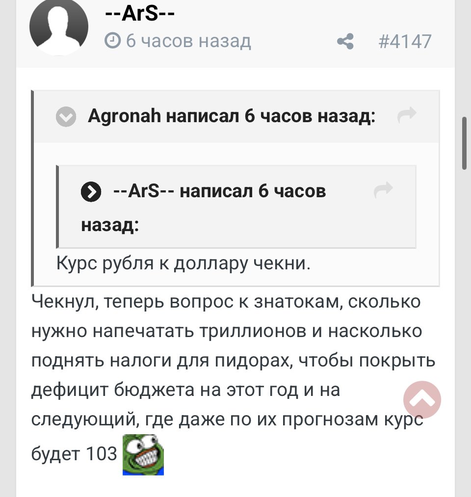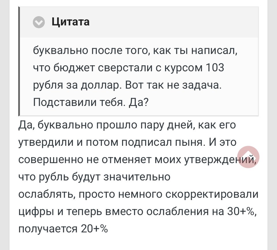 у которого АДЕКВАТНОЕ УСЛОВИЕ в споре «а какой будет курс чтобы сказать что он сильно просел» оно называет курс КОТОРЫЙ ДЕРЖАЛСЯ УЖЕ БЛЯТЬ ЦЕЛЫЙ ПРЕДЫДУЩИЙ ГОД