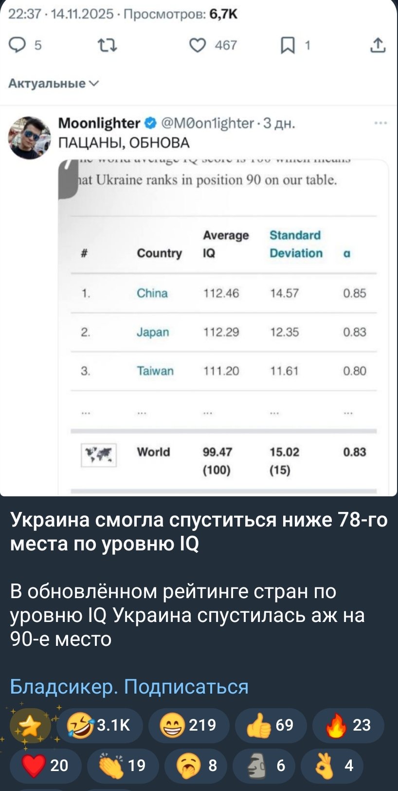 А это рофляная залупа, где санча, Палыч, мусиенко во главе со своим политруком лориком рофлят с дохлых чубатых мразей под фабами.