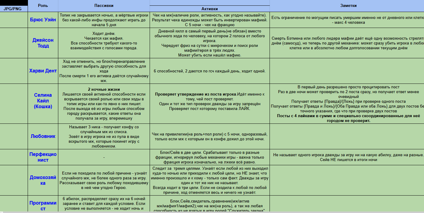 Francyz #3232 В понедельник в 12:52 kabalka написал Только что: Обращаем внимание, что ведущий-то не уёбок походу, согласны. В табличке игры есть лист отдельный: Там список ролей для этой игры с описаниями что кто делает, может дополняться или наоборот покороче где-то сделаю. нет лайка но ты лучший ^ MAL Поделиться сообщением Ссылка на сообщение