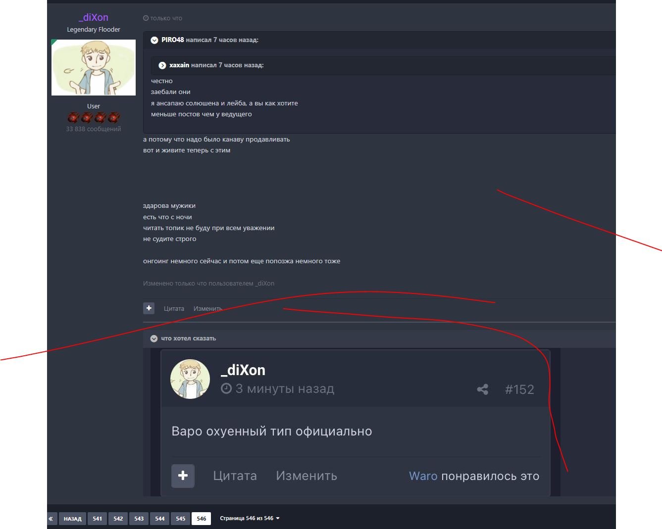 _diXon #10916 3 декабря (изменено) PIRO48 написал 7 часов назад: xaxain написал 7 часов назад: у лейбстера конечно ноль игры честно заебали они я ансапаю солюшена и лейба, а вы как хотите меньше постов чем у ведущего а потому что надо было канаву продавливать вот и живите теперь с этим здарова мужики есть что с ночи читать топик не буду при всем уважении не судите строго онгоинг немного сейчас и потом еще попозжа немного тоже @NaniQue- зырь сигна Изменено 3 декабря пользователем _diXon ху из ху Поделиться сообщением Ссылка на сообщение