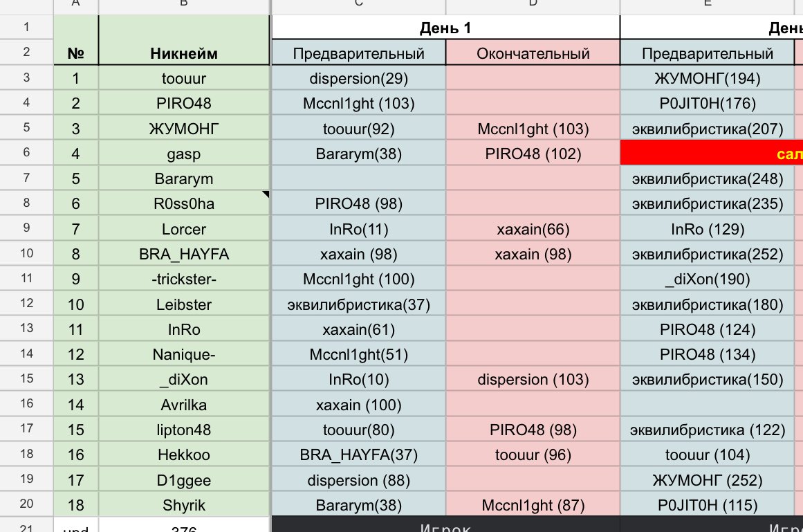 BRA_HAYFA #7551 20 часов назад dispersion написал 22 часа назад: BRA_HAYFA написал 22 часа назад: dispersion написал 22 часа назад: BRA_HAYFA написал 22 часа назад: dispersion написал 22 часа назад: pnanrkotikivj написал 22 часа назад: dispersion написал 23 часа назад: pnanrkotikivj написал 23 часа назад: dispersion написал 23 часа назад: Мне ж кстати не надо спрашивать, искали ли вы блок роллтона, чтобы у нас был ренж со вторым ником к Шурику на ману? Он видел чек экви, шо ты несешь Роллтон получил блок с мертвого Фулела Килла мана не было Шурик во фризе Еще найти куда мог блочить роллтон и у нас потенциально ник мана на руках Че ваще не верите французу? Бать, чел пишет, что ман, получил блок, но не юзал, потому что может ток одну абилку из двух юзать. Я спросил у варо - ман может абое одновременно, француз не знает своей же механики мановской - мафия вскрытая если француз мафия - то ты с пиро именно разноцвет имхо У тебя в игре есть сравнитель? Если нет, то понятия разноцвет не может существовать, непара да француз маф говорит что блочил тебя - дает тебе алиби 1) он либо тебя прикрывает и ты с ним в конфе, значит пиро мж. т.к. я не особо вижу тут вам троим хуйней заниматься, где один вкидывает во второго, а третий поперек стола пушит второго байтя на лишние телодвижения 2) ты мж, а пиро зная, что тебя не блочили, пушит поперек стола и на этом окрасняется + упарывается как в прошлой - пиро мафия есть еще третий вариант, где француз мафия говорит что блочил тебя мж, а пиро мж тебя пушит но блять пиро мж ведь не знает ролей, он что долбоеб пушить чела с алиби? (напомню в тот момент мжи не знают что француз мафия, и инфа про алиби вполне легетимная) третий варик отсекаем + пиро ща пишет что он вывел что у тебя не 4 алиби а 2, ващето это не он вывел, а помоему диги или ктото другой притащил инфу что у конфы есть неблокируемость в итоге по первым двум варикам у вас разноцвет ну либо пиро рак Это непара, а не разноцвет Пиро частую упорку имеет, я могу представить ситуацию, где он с нулевой уперся в меня и не откатывает Цитата Поделиться сообщением Ссылка на сообщение