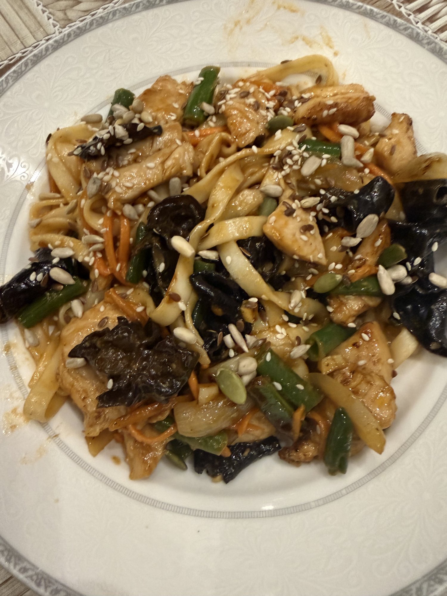 gasp #264 вчера в 16:52 Aferus написал Только что: gasp написал 2 минуты назад: Aferus написал 7 минут назад: gasp написал 9 минут назад: Пока вы хуйней занимаетесь, я вок осваиваю и как по вкусу получилось? Подгорело малясь, но в целом норм. Сложная хуйня этот вот. А что там подгорело? С виду окей все. Че за темная штука кстати? Знаю, что кунжут добавляют, но семки обычные, кажется, впервые вижу в этой лапше) Визуально там горелого нет, но немного чувствуется. Темная штука это китайские древесные грибы, они на озоне в сушеном виде продаются. А сверху я салатную смесь бахнул, там кунжут с семками, кстати в тему получается. Поделиться сообщением Ссылка на сообщение