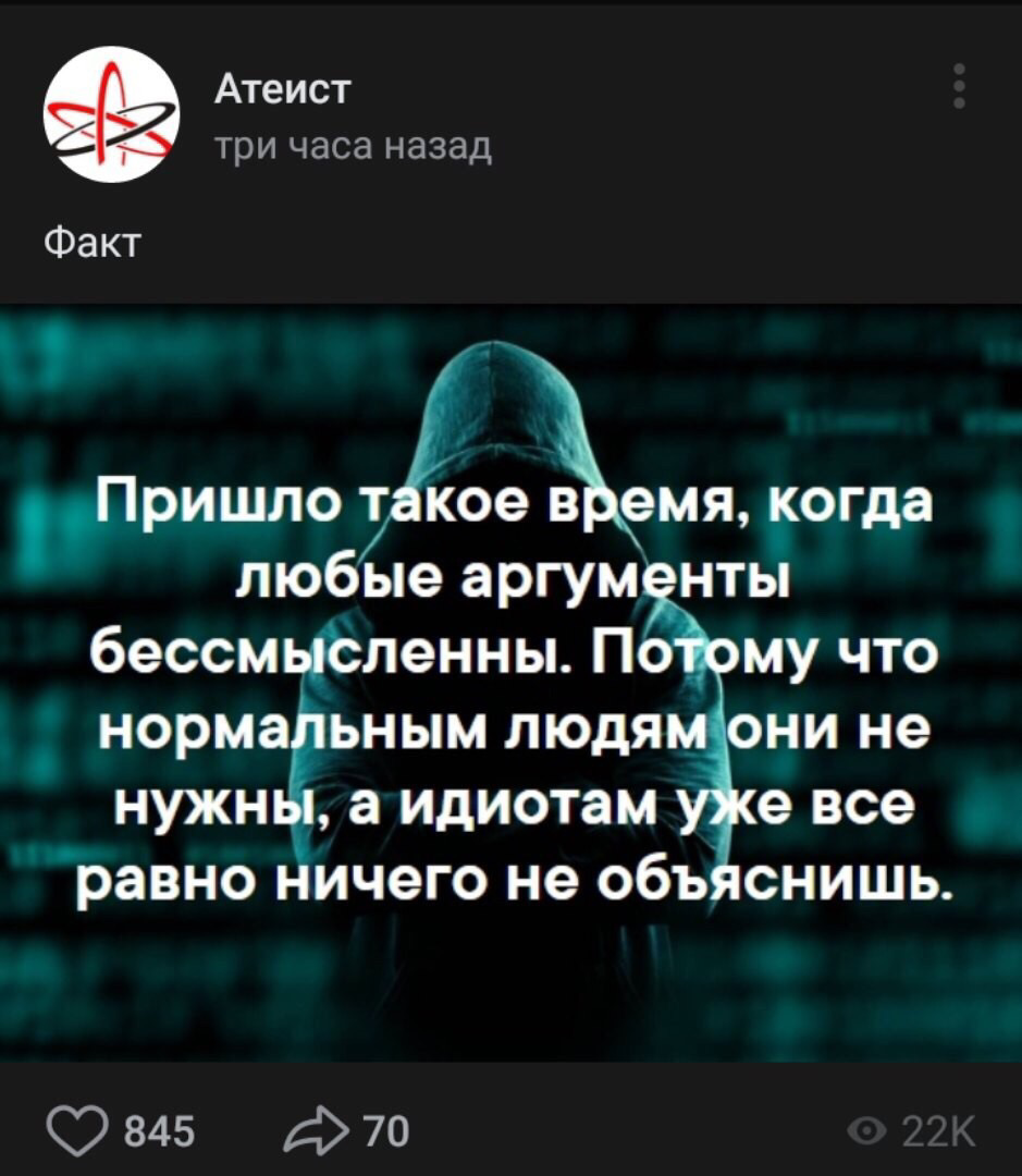 Eva #3919 Во вторник в 06:30 Yozhka написал Только что: Eva написал 4 минуты назад: Yozhka написал 5 минут назад: У тебя так-то тоже без меня мафии нет. Так в чем вопрос? Я знаю, что не черная. И я знаю, что не черный Что делать будем? Меня киллом родиона подставили попытаться найтись мысли не было? Давай поищем тройку без друг друга Leibster написал 9 минут назад: Ой блять липтон тоже в две игры играет идите нахуй просто Я пытался читать его профиль и забил хуй Поделиться сообщением Ссылка на сообщение
