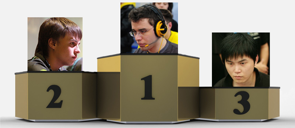 Довольно предсказуемое первое место в номинации лучшего мидера планеты досталось Dendi. Он почти вдвое опередил по голосам своего китайского конкурента. Удивляет третье место Скандала из Empire, не так давно заявившего о себе на ПРО сцене. Возможно, этот российский талант впечатлил юзеров на последних турнирах.