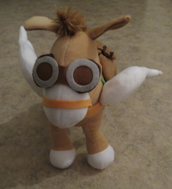 2. Плюшевый курьер-ослик (вид спереди, сверху, сбоку и общий размер)