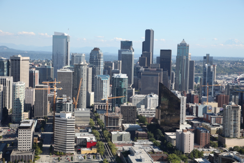 Вид на Сиэтл с высоты птичьего полета.